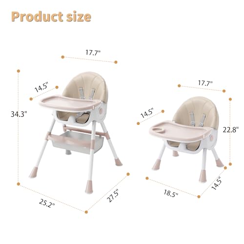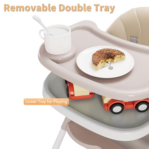 🐾【Easy to Clean】The removable high chairs cushion is made of PU, which is easy to clean and wipe. Double dining tray – top dining, bottom playing, can be switched and removed at any time for easy cleaning.