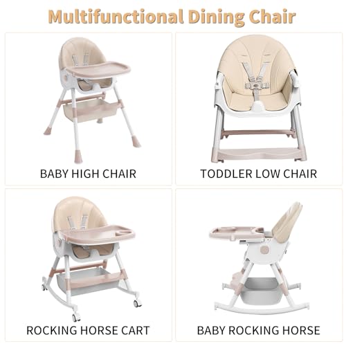 🐾【4 Functions Baby High Chair】Our highchair offers versatile functionality from baby high chair to toddler low chair, rocking horse cart, baby rocking chair. It can meet your child’s various needs. Designed for ages 6 months to 6 years, ensuring long-lasting use.Weight-bearing for 110 LBs/ 50 KG