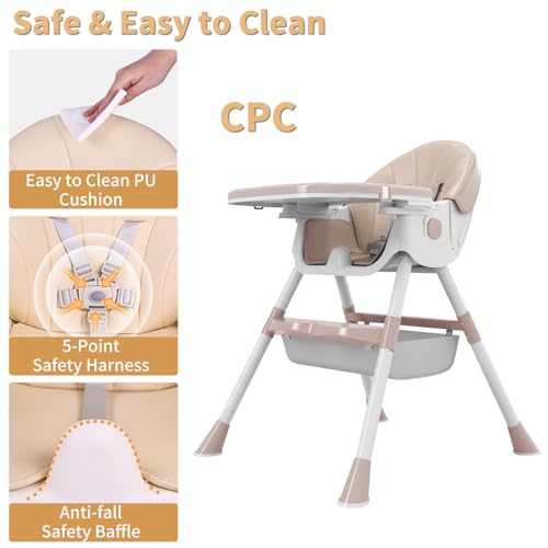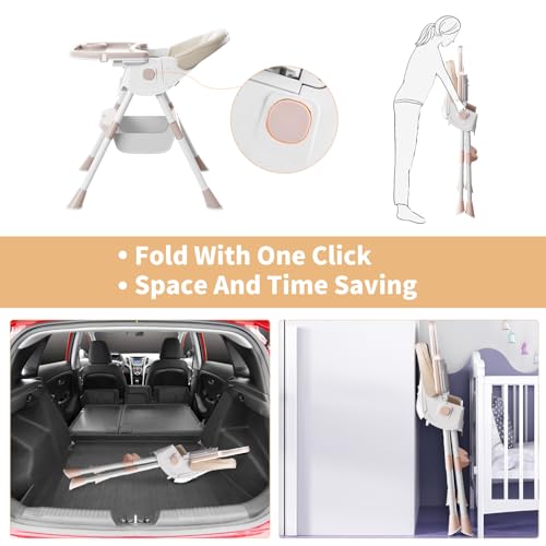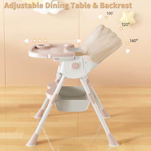 🐾【Safe & Stable Construction】Our baby chair for eating include a five-point harness and safety guards to prevent your child from slipping out of the high chair for baby. The folding high chairs is designed as a stable triangular structure, which makes the whole dining chair more stable.Non-slip foot pads, firm and non-slip.