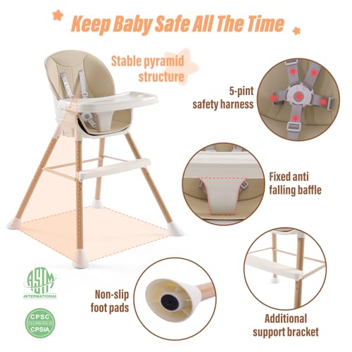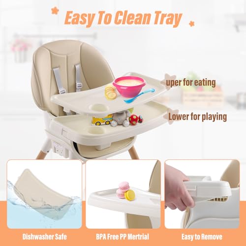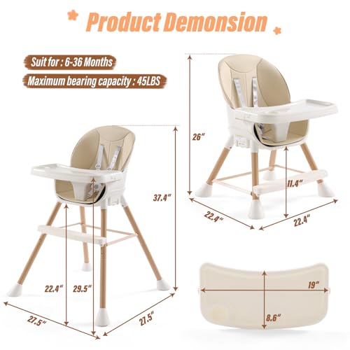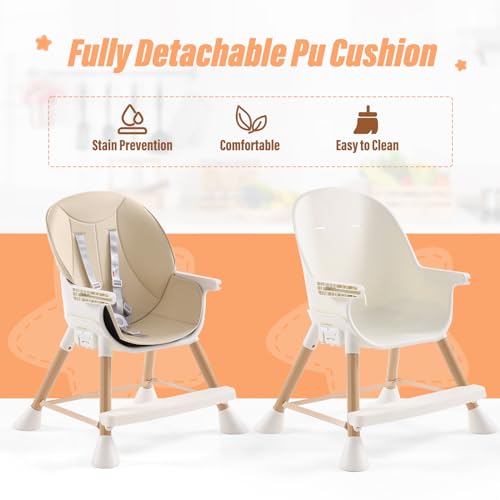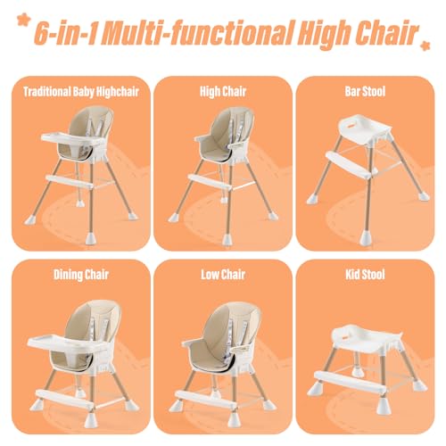 High Chairs for Babies and Toddlers,6 in 1 High Chair, Adjustable Convertible Infant Baby Feeding Chair with Dishwasher Safe Tray (Beige)