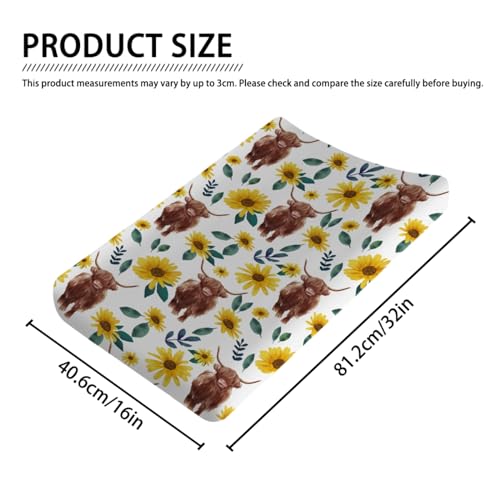 Highland Cows Floral Changing Pad Covers Highland Yak Flowers Leaves Diaper Change Table Pad Covers for Baby Girls and Boys Soft Breathable Stretch Changing Table Cover 32”x16” Sunflowers