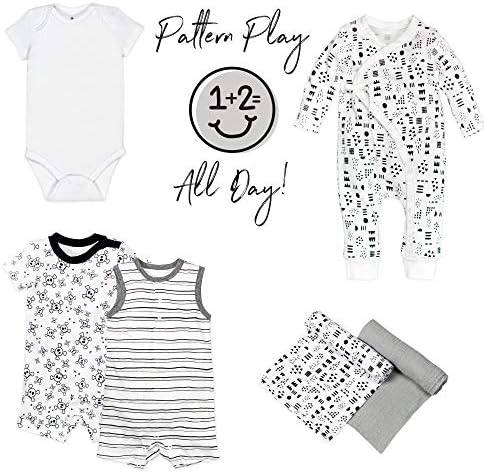 HonestBaby unisex baby 3-Piece Organic Cotton Hooded Towel & Washcloth Set Bandana, Pattern Play, One Size US