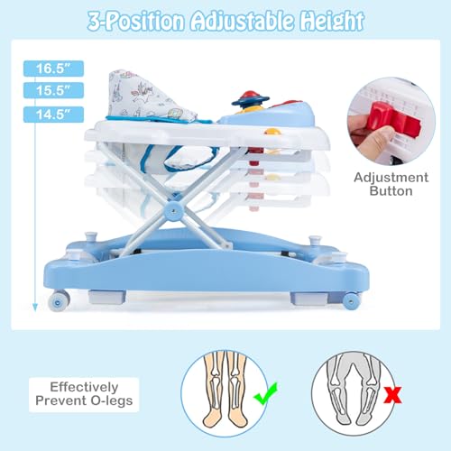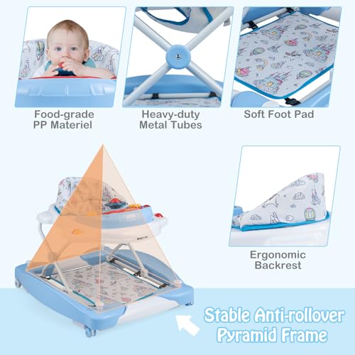 HONEY JOY Baby Walker, 6-in-1 Foldable Baby Walker and Bouncer Combo, Infant Activity Walker with Wheels, Adjustable Heights, Rocker, Music, Lights, Walker for Baby Boy Girl 7-14 Months (Blue)