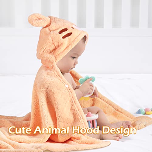 WODHOY Hooded Toddler Bath Towels for Boys Girls 0-5 Years, 2-Pack Absorbent Baby Bath Towel Set Thick 50'' x 32'', Soft Hooded Bath Towels for Babie, Toddler, Infant