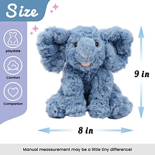 Hopearl Adorable Plush Calf Elephant Toy Floppy Elephish Ultra Soft Stuffed Animal for Boys Girls Kids Toddlers, Blue, 9”