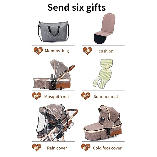 Hustlepapa 3 in 1 Baby Travel System Reversible Baby Stroller Pushchair Portable Baby Standard Pram Buggy Baby Carriage Foldable Luxury Baby High Landscape Pram for Toddler Newborn, Cream