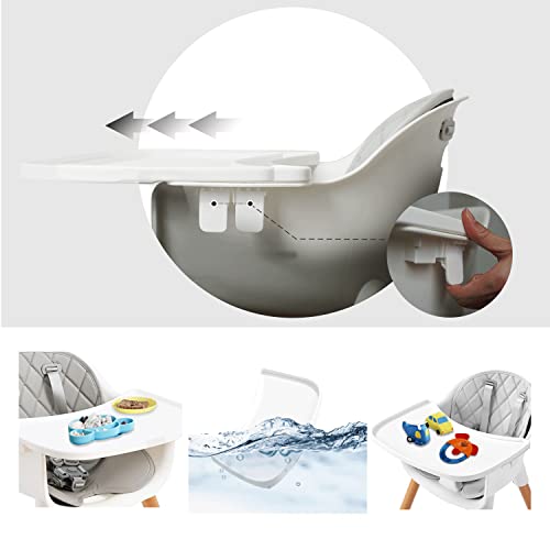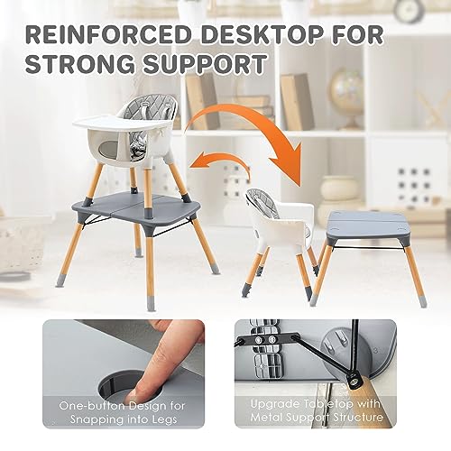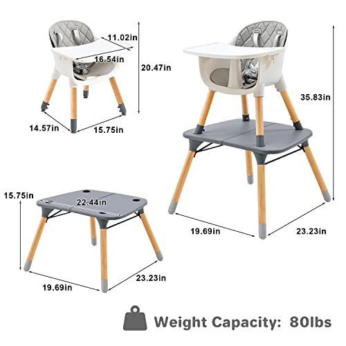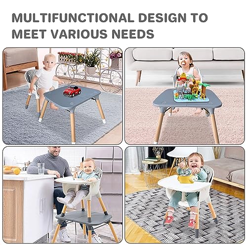 IKARE Wooden Baby High Chair W/Removable Tray & Safety Harness, 5-in-1 Kids Chair Table Set/Booster Seat/Infant Feeding Chair | Grows with Your Child | Adjustable Legs | Modern Wood Design (Gray)