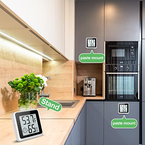 【Versatile & Adaptive】Find the perfect spot with multiple installation options: stand, wall mount, or adhesive mount. Our hydrometer for humidity and room thermometer indoor is ideal for various spaces, such as living rooms, bedrooms, kitchens, offices, greenhouses, and more.
