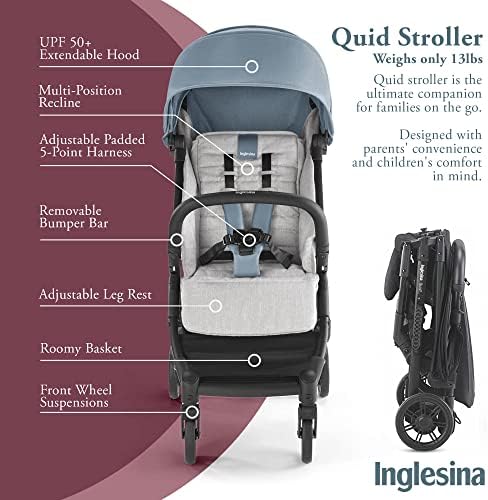 Inglesina Quid Baby Stroller – Lightweight at 13 lbs, Travel-Friendly, Ultra-Compact & Folding – Fits in Airplane Cabin & Overhead – for Toddlers from 3 Months to 50 lbs – Large Canopy, Stormy Gray