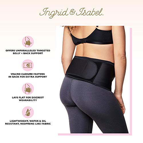 Ingrid & Isabel Pregnancy Support Belt, No-Show Maternity Belly & Back Support Band, Black, M/L