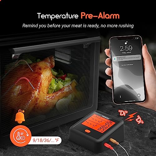 【Multifunctional yet Easy to Use】: The intuitive Bluetooth thermometer APP allows you to effortlessly monitor and adjust cooking settings, the high/low-temperature alert, temperature pre-alarms, count-up/down timers reduce the risk of overcooking or undercooking. The INKBIRD thermometer app also offers 29 types of USDA preset menus for notice reference, with customizable temperature and cooking time, making cooking easier.
