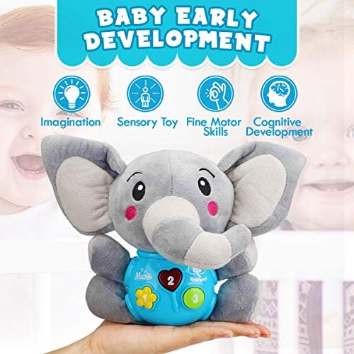 Insnug Plush Elephant Baby Toys – Baby Musical Animal Toys Kids Toys Baby Teething Toys Little Baby Bum Anime Plush STEM Toys Montessori Toys for Baby Boy Girl Toddlers Infants 0 3 6 9 12 Months