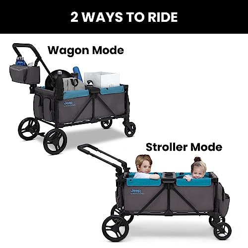 Jeep Sport All-Terrain Stroller Wagon by Delta Children – Includes Canopy, Parent Organizer, Adjustable Handlebar, Snack Tray & Cup Holders, Grey/Blue Moon