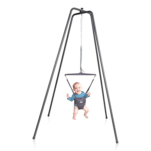 Jolly Jumper created the ‘Original Baby Exerciser’ that has been providing fun and physical fitness for babies since 1948. The Jolly Jumper with Super Stand has an extra tall, sturdy frame that folds flat for storage and portability. This version combines the best attributes from both of our Jolly Jumper models. The spring action is ideal for the active baby who wants more bounce and fun. The saddle seat is designed to firmly support baby’s spine, ensuring correct, upright posture during exercise. For over 68 years, Jolly Jumper has helped infants develop coordination and rhythm, strengthen muscles and improve balance. Easy assembly (no tools required). The Jolly Jumper Super Stand can be used indoors or outdoors.
