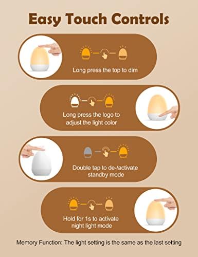 JolyWell Night Lights with Stable Charging Pad, Touch Control&Timer Setting, ABS+PC Baby Egg Lamp for Breastfeeding,Kids, White