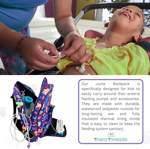 Junie Feeding Tube Backpack for Kids Enteral Feeding Pumps (EnteraLite Infinity and Kangaroo Joey), G Tube, J Tube, GJ Tube, PEG Tube Bag fits 500mL to 1L Capacity Bags (Aliens)