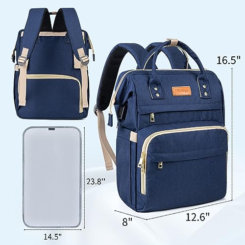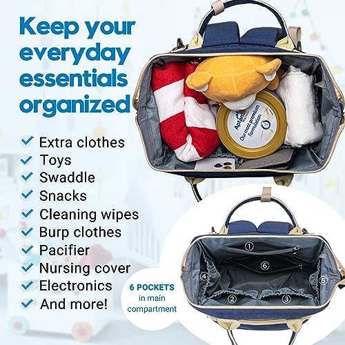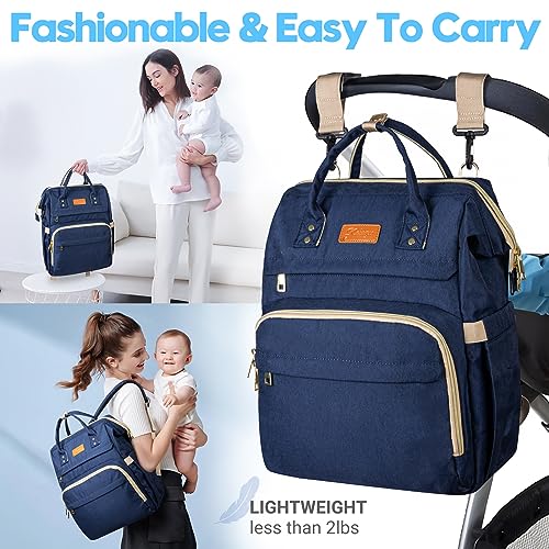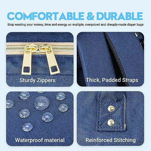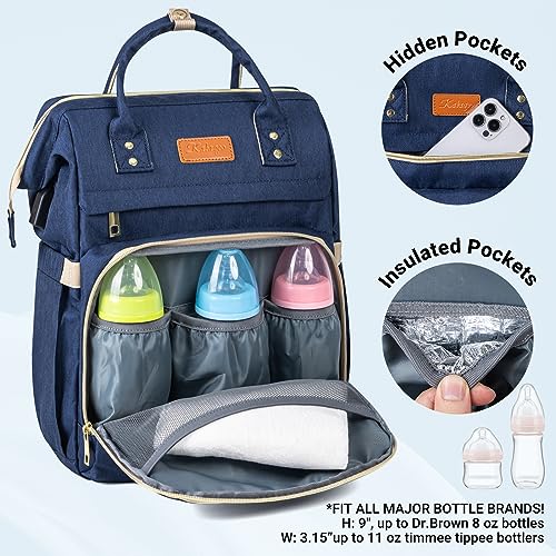 KABAQOO Diaper Bag Backpack, Large Baby Bag for Boys & Girls, Multifunction Travel Diaper Backpack, Baby Registry Search, Newborn Essentials Gifts, Blue