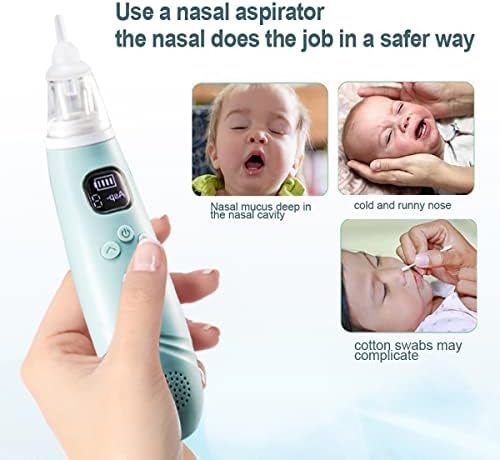 KANEE Baby Nasal Aspirator Electric Baby Nose Sucker,3 Suction Levels for Newborns Booger Snot Mucus Remover,Toddlers Rechargeable Infants Nose Cleaner,3 Different Silicone Nozzles & Music Green