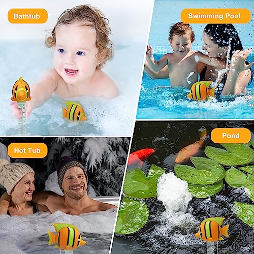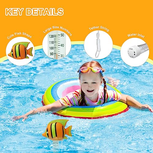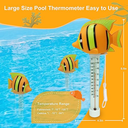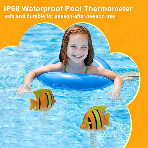 Swimming Pool Temperature Thermometer with Cute Fish Shape: The floating thermometer is designed with a vivid fish on the top, so it not only helps to measure the water temperature for your pools, but also is a funny pool decoration that makes the dull pool more attractive. Also this cute pool thermometer will be a great company on bathing or swimming.