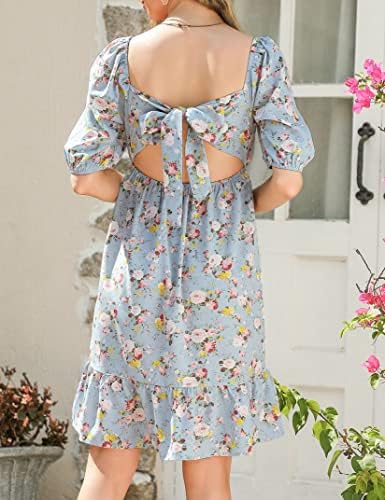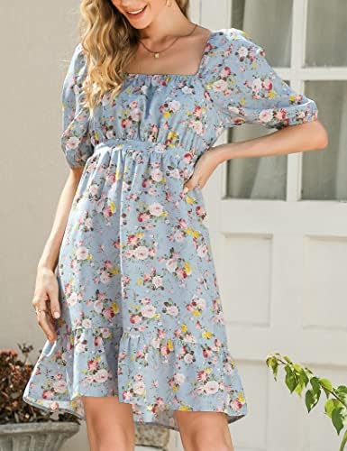 KOJOOIN Maternity Dress Summer Women Tie Back Square Neck Puff Sleeve Off Shoulder Pregnancy Baby Shower Dress