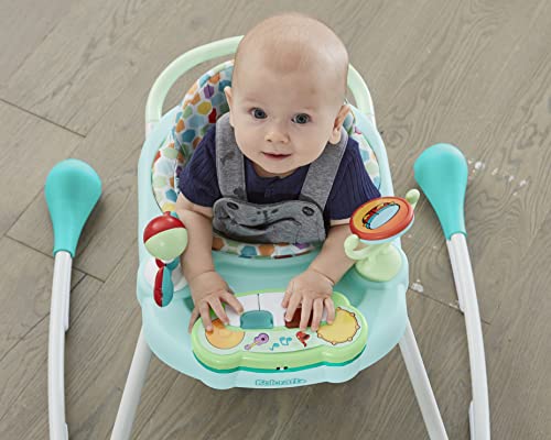 DEVELOPMENTAL ACTIVITIES: Entertaining walker for baby features developmental activities: rotating music notes, spinning tambourine for batting play, and detachable piano toy with lights & music