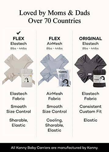 Konny Baby Carrier Flex Elastech Premium Material – Adjustable, Easy to Wear and Wrap Baby Sling, Perfect for Newborn Babies Essentials up to 44 lbs, (XS-XL) – Black