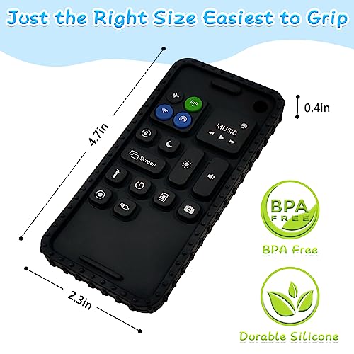 Kpblis Baby Teether Toys, 2 Pcs Remote Control Shape Teething Toys and Phone Shaped Teether for Baby, Silicone Teethers for Babies 6-12 Months, Early Educational Sensory Toy – Black,Black