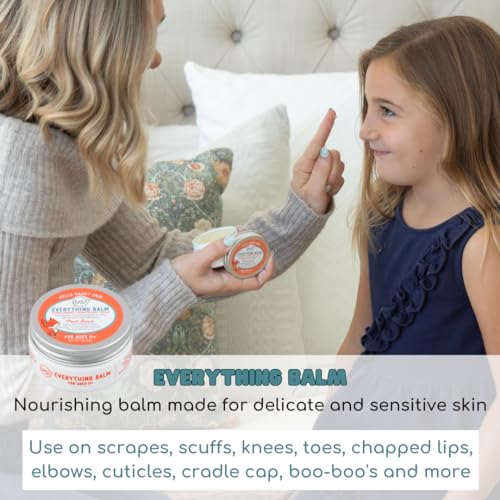 A balm for all seasons – Whether your child has dry, sensitive, or delicate skin, this gentle baby moisturizer is perfect. You can use it on cuts, scuffs, chapped lips, elbows, cradle cap, cuticles and baby acne.