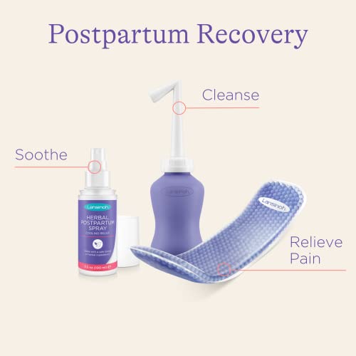 POSTPARTUM RECOVERY KIT – Includes 1 Peri Bottle, 1 Herbal Perineal Spray, and 2 Reusable Hot & Cold Postpartum Pads with 12 disposable sleeves