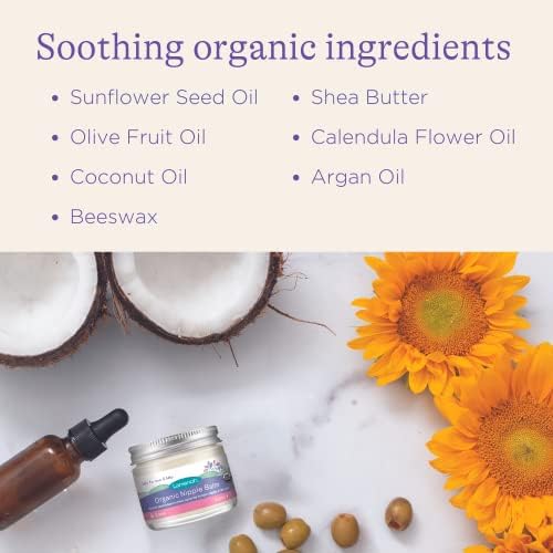 ORGANIC NIPPLE BALM WITH SOOTHING ORGANIC INGREDIENTS – Sunflower oil, olive oil, beeswax, coconut oil, shea butter, calendula flower extract, and argan oil