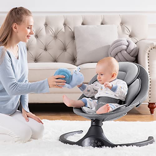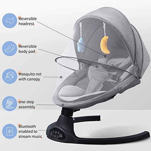 Larex Baby Swing for Infants | Electric Bouncer for Babies,Portable Swing for Baby Boy Girl,Remote Control Indoor Baby Rocker with 5 Sway Speeds,3 Seat Positions,10 Music and Bluetooth,Aluminum