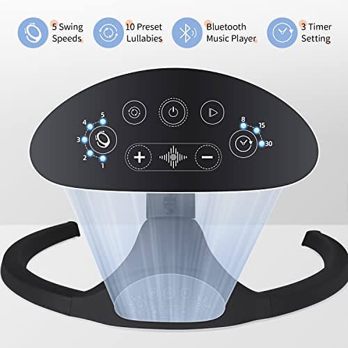 🤗[Touch Panel&Remote Contol]2 Way Control makes operating the baby swing flexible and easy.Parents can select the desired preset lullabies and timer setting of 8,15 or 30 minutes.