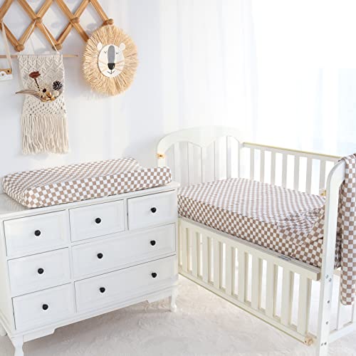 LifeTree Diaper Changing Pad Cover for Boys Girls – Soft Muslin Fitted Changing Table Sheets – 16"x32" Viscose from Bamboo Cotton Blend – Tan Checkered Print