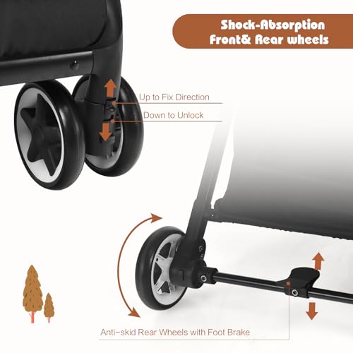 🍼[Quick-Lock System]: Smooth ride with shock-absorbing universal wheels comes first. While the lock system also does a great job, you can lock the wheels seperately—and in emergency, you will find the one-step pedal brake a brilliant design.