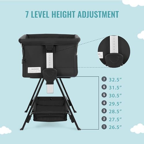 Lilly Bedside Bassinet for Baby, Lightweight and Portable Baby Bassinet, Seven Position Adjustable Height with Large Storage Area