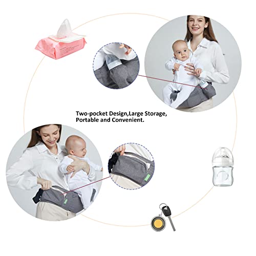 【Huge Storage Design】: Hip carrier for toddler with side-pocket is very convenient for parents for having a walk outside or travelling. Huge side-pocket is functional which can store baby’s bottle for baby’s needs and another side-pocket with zip can take in tissue, keys or phone wheneven you need.