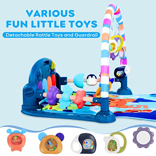 【Various Detachable Fun Little Toys & Side Guard Rail】 – This Baby play gym with 5 adorable hanging & detachable Rattle toys, including a baby-safe mirror. The cute baby safe mirror can cultivate the baby’s self-awareness from an early time.The penguin toy with eggshell on the side rail can also arouse the curiosity of the baby.