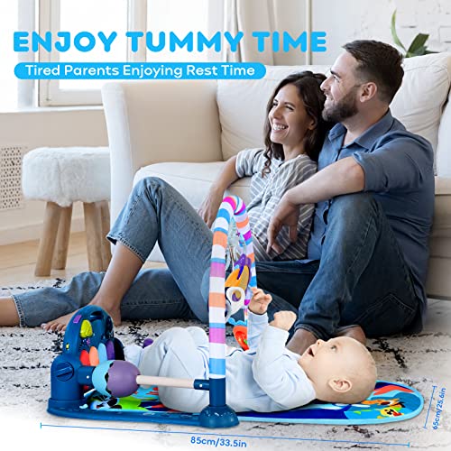 Looxii Baby Play Gym with Tummy Time Water Play Mat, 2 in 1 Baby Activity Gym with Music and Lights, Kick and Play Piano Gym for Baby Newborn Infants Toys 0 3 6 12 Months Girl & Boy Gifts