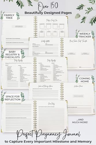 [ What’s Included ] This baby memory book to be the perfect keepsake that you will cherish. This pregnancy journal includes ribbon marker and a keepsake pocket at the back. This is a modern, minimalistic leafy hardcover with gold coils, 9″ x 8.75″ cover with over 150 pages printed on thick 70lb paper that does not bleed through.