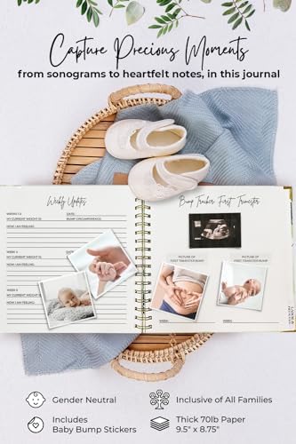 LUMOSX Pregnancy Journal Memory Book – w/BONUS Baby Bump Stickers in the Gender Neutral Baby Book Memory – Baby Journal Is a Pregnancy Must Haves, Best Gifts For Expecting Moms, Baby Shower Gifts