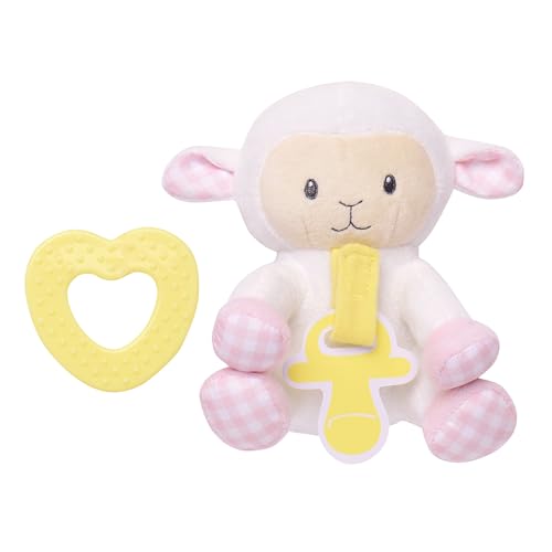 Magic Years 5 inch Plush Paci-Pal with Rattle and Detachable Teether for Baby, White Lamb, 5 inch