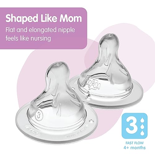 At MAM we work with medical experts to anticipate your baby’s needs from day one. Whether you’re using baby formula or expressed breast milk, MAM bottles will support you every step of the way. MAM Easy Active Bottles have a SkinSoft textured nipple that is easily accepted by babies. The anti-slip surface at the base helps to keep it in baby’s mouth, so MAM nipples are often accepted by babies when other nipples are not.The flat shape of the nipple fits perfectly in your baby’s mouth, making the switch between breast and bottle easy. The ergonomically-designed bottle is easy for both parents and babies to hold, and the wide neck makes filling and cleaning easy. The bottles are also compatible with Slow Flow (0+ months), Medium Flow (2+ months), Fast Flow (4+ months), and Extra Fast Flow (6+ months) nipples.This set includes two MAM Fast Flow Silicone Nipples, accepted by 94% of babies. The bottle is made from BPS and BPA free materials. *Medical study 2011 / Market research 2010, tested with 204 mothers. ** Market research 2009-2020, tested with 1,572 babies .