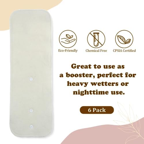 Mama Koala One Size Baby Cloth Diaper Inserts, Super Absorbent 3-Layer Hemp Cotton Inserts with Snaps, 6 Pack