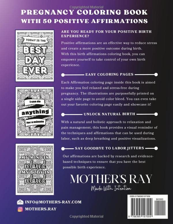 Positive affirmations are an effective way to reduce stress and create a more positive outcome during birth. With this birth affirmations coloring book, you can empower yourself to take control of your own birth experience.