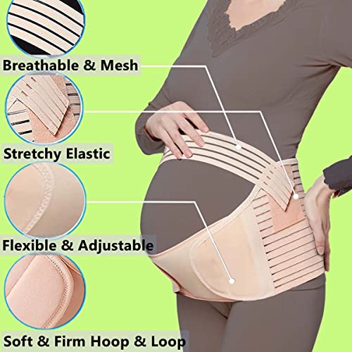 Maternity Belly Band Pregnancy Abdominal Support Belt for Pregnant Women, Soft & Breathable Back Support Relieves Back Strain (Medium, Beige)