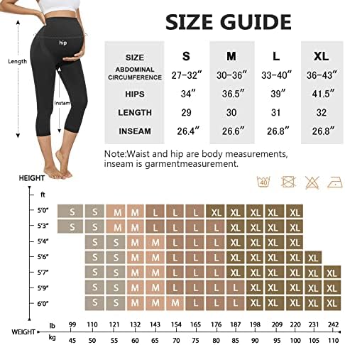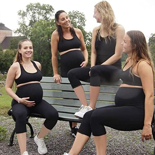 Maternity Capri Leggings Over The Belly Butt Lift -Soft Non-See-Through Workout Pregnancy Pants for Women