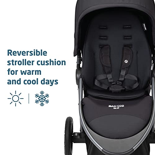 Maxi-Cosi Gia XP Luxe 3-Wheel Travel System, Nimble 3-Wheel maneuverability with All-Terrain Tires and Front-Wheel Suspension, Midnight Black
