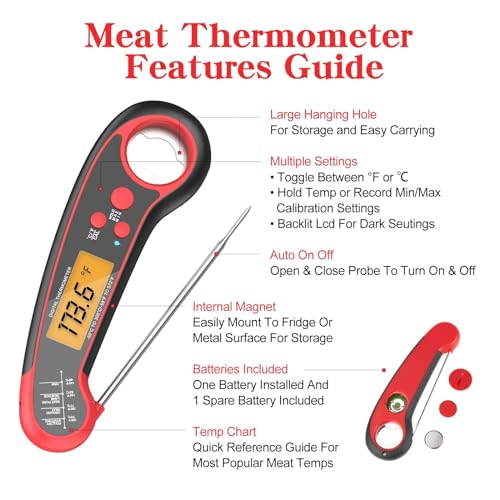 SATISFACTION GUARANTEED: We stand behind the quality of our instant read thermometer. If you have any questions or concerns, our friendly customer support team is always ready to assist you. Buy with confidence and elevate your cooking experience today!