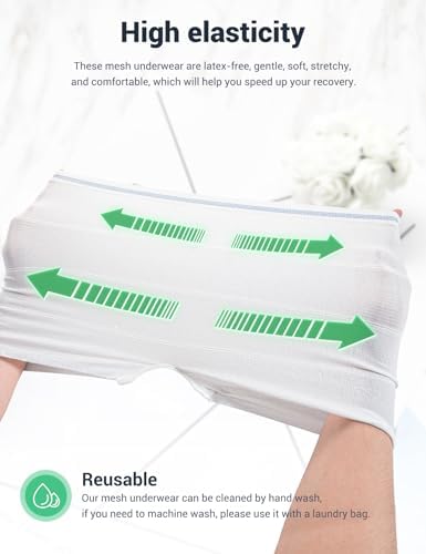 【Washable and Reusable Mesh Pantie】: Seamless Mesh Postpartum Underwear hand wash better, these mesh underwear postpartum panties can be washed about 3-5 times; and we know size is a big issue, so we’ve measured each size from original length to mesh panties postpartum has full stretch. you can refer to the size chart for the detailed information( Fit Tip: If you are in-between sizes it is recommended that you choose the larger size for fit ).