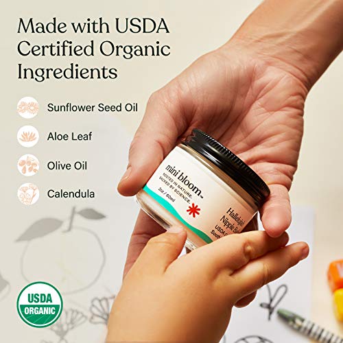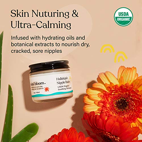Mini Bloom Hallelujah Nipple Balm | USDA ORGANIC Soothing Ointment | Restores & Repairs Dry, Cracked, Sensitive Nipples | Lanolin-Free, Made w/ Aloe, Calendula, Olive & Sunflower Seed Oils | 2 oz